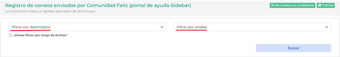 2.- Buscar por Nombre (en filtrar por destinatario) o por Unidad, incluso es posible filtrar por rango de fecha y darle buscar: