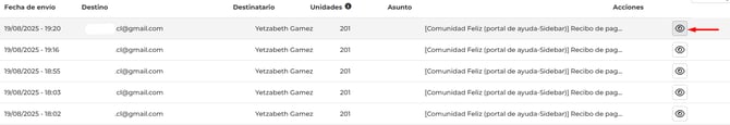 El registro de correos es una herramienta exclusiva del Plan Standard y Premium de Comunidad Feliz. Verifica en tiempo real si el gasto común o cualquier otro correo enviado desde la plataforma ha sido recibido por los residentes.
