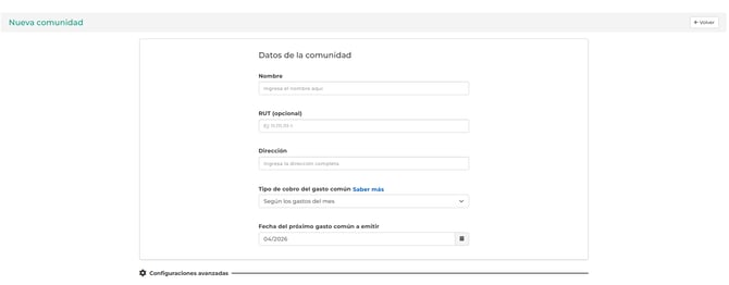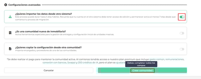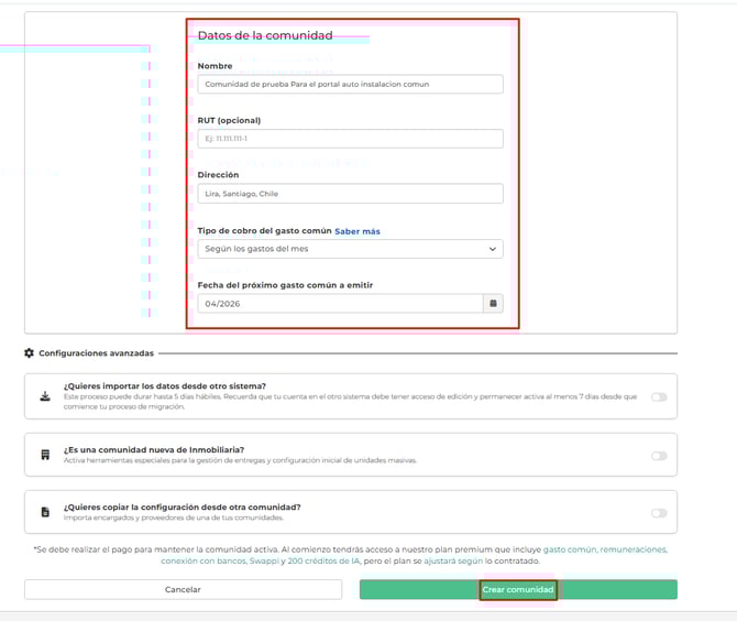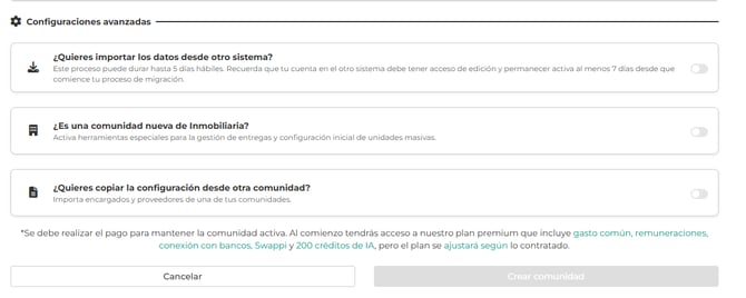 Esta opción es solo para crear una comunidad nueva desde cero. No sustituye ni trae información de comunidades que ya se encuentran instaladas.