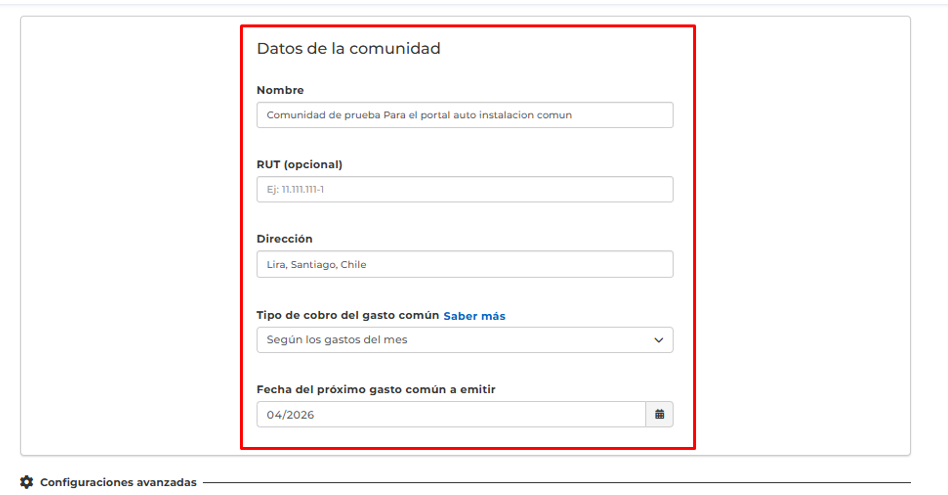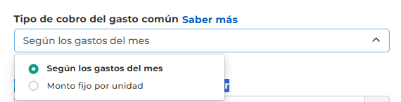 Tipo de cobro del gasto común: Existen dos opciones