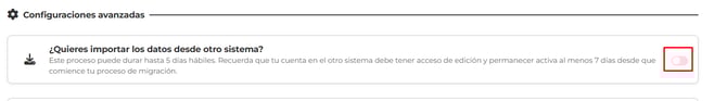 ¿Quieres importar los datos desde otro sistema? Este proceso puede durar hasta 5 días hábiles. Recuerda que tu cuenta en el otro sistema debe tener acceso de edición y permanecer activa al menos 7 días desde que comience tu proceso de migración.