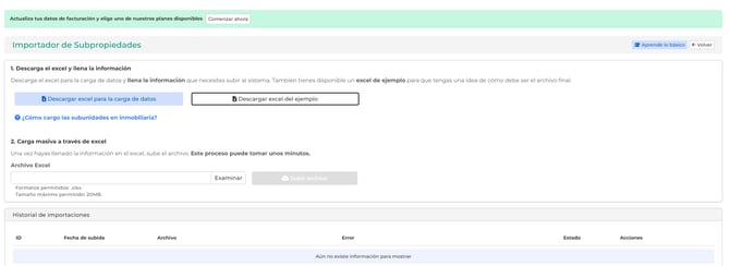 - Descarga el Excel de ejemplo y allí completa la información.