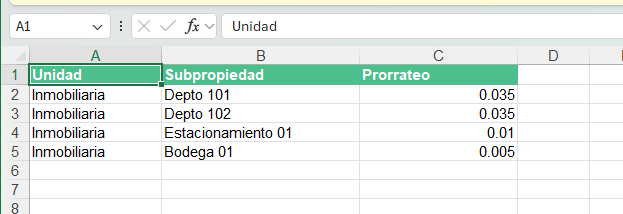 Prorrateo (% de participación o coeficiente)