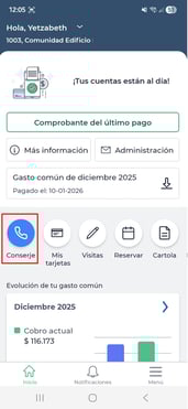 En tu celular recibirás una notificación de llamada que dice: “Conserje” (o similar, según la configuración). En la pantalla principal verás un botón de teléfono azul para llamar a conserjería. a tu conserje?